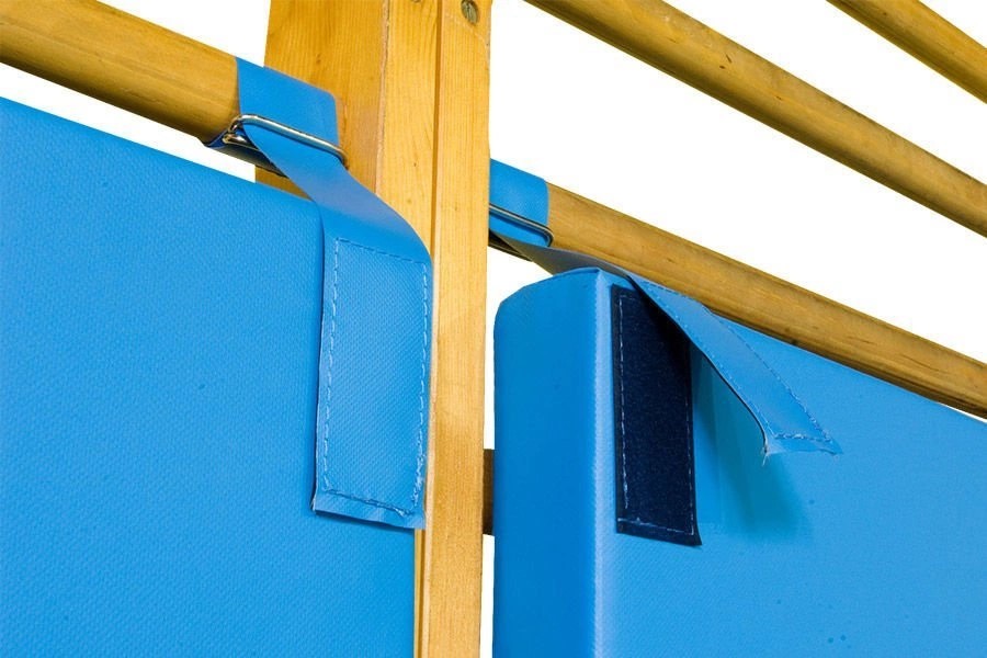 Materac asekuracyjny na drabinki gimnastyczne 200 x 85 x 6 stosuje się go do zabezpieczenia drabinek podczas gier zespołowych. Może być stosowany również do prowadzenia zajęć dydaktycznych. Pokrowiec materaca wykonany z miękkiego i gładkiego materiału typu PCV, przyjaznego dla skóry, który nie powoduje otarć. Posiada prosty system montażowy do zawieszania na drabinkach. Wkład z super lekkiej pianki PE o doskonałych właściwościach tłumiących.